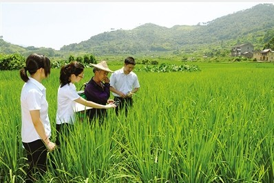 文成农信联社开展“进村入企”三夏大走访活动,员工深入田间地头调研农户融资需求。厉杰勋摄