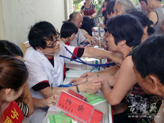 龙港网8月31日讯:昨天下午,宜山镇锦城社区的老少居民们在该社区的养老服务中心一楼大院内免费看起了病。这是城镇社区联合弘远爱心联盟宜山分会的爱心志愿者到该社区开展送药进社区活动,给社区广大居民和新居民义诊,以实际行动关爱社区居民健康,促进社区人文融合,加快幸福社区建设。