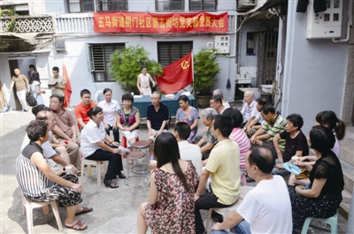 永宁巷50号,是一个典型的老式居民大院,而大院里的6户人家,有4户是党员家庭。与平时所见的党员大会里严肃的氛围不同,这个在庭院里召开的“街坊党支部”党员大会,显得更加轻松和惬意,多了几分“街坊”的味道。