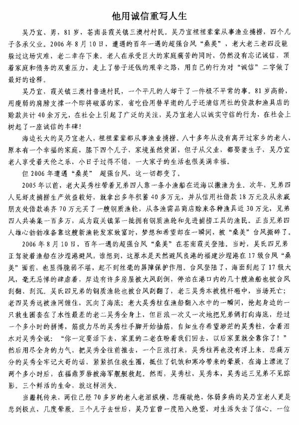 “诚信老爹”吴乃宜用诚信重写人生