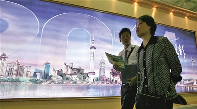 温州一房地产博览会现场,销售人员不失时机地围着看房者竭尽全力地推销房子。赵用摄