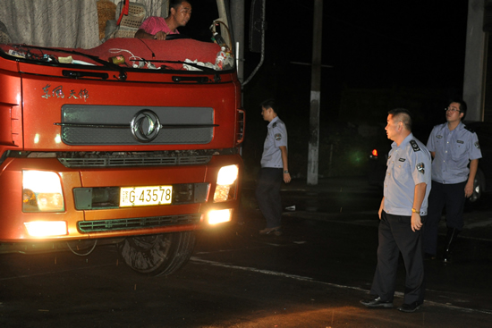 龙港镇安监局、舥艚安监站、舥艚派出所协同在路上设卡检查来往车辆