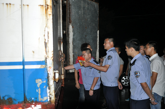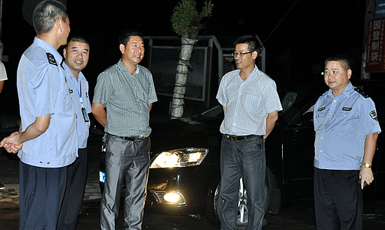 龙港网9月14日讯:昨晚8点开始,在进入舥艚社区各路口处,来自龙港镇安监局、舥艚安监站、舥艚派出所20余名组成的工作人员对过往车辆进行抽查,利用卡点堵截运输非法烟花爆竹车辆,确保开渔节期间的安全。龙港镇镇委副书记、舥艚社区党委书记黄贤满、舥艚社区管委会主任陈庆云在深夜中冒着夜雨看望了在设卡点工作的全体人员。