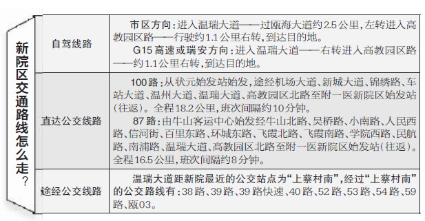 新院采取全面预约诊疗,所有门诊坐诊医生号源100%开放,供患者预约。市民可通过114、12580,网络(www.wzhospital.cn),现场(医师站、一楼服务中心、楼层服务站)多个途径进行。