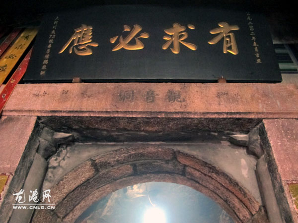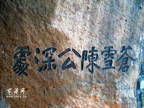 观音洞的得名,源于大殿后的一个大石窟。洞之上,有峰名曰香炉峰,巉崖挺拔,酷似香炉,石殿里面供养着一尊静坐的观音大士像,洞的石壁上刻着“苍雪陈公深处”六个大字,字甚遒劲古朴。引发了众多游人的好奇。