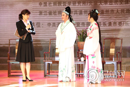 中央电视台主持人董倩(左)和五位国内著名的专家学者现场探讨王十朋