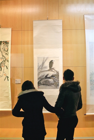 春节里,一些市民来到温州市博物馆,观赏“俏不争春”馆藏花鸟画展,品味国画魅力。刘伟摄