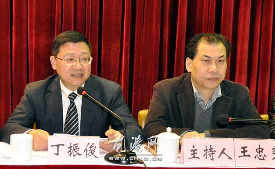 苍南县委常委、龙港新城党委书记、管委会主任、龙港镇委书记丁振俊(左)