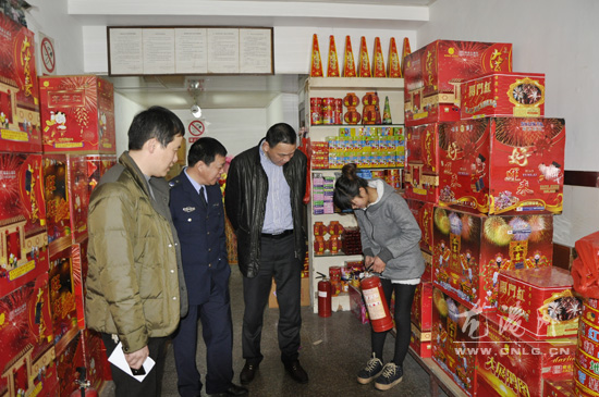 龙港网3月4日讯:近日,龙港镇开展两会期间消防安全大检查,对烟花爆竹储存和经销点进行重点盘查。镇领导赵凯,以及安监、消防、公安等部门负责人参加这次检查行动。