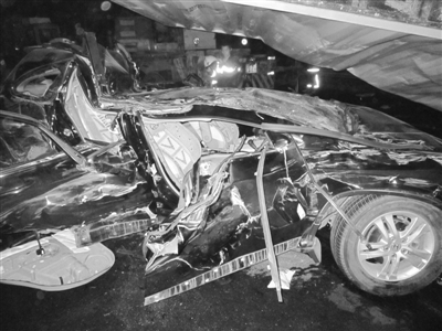 一辆越野车被31吨重型集装箱压扁,幸运的是越野车驾驶员李先生和他的3个朋友都没有生命危险。