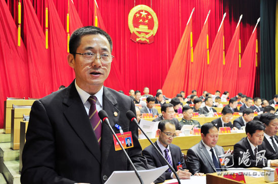 受县第九届人民代表大会常务委员会委托,县人大常委会主任苏庆明向大会作工作报告,提请大会审议。“今年共召开常委会议10次、主任会议22次,听取和审议专项工作报告45个,开展执法检查、视察调研60次,提出审议意见14件,顺利完成了县九届人大一次会议确定的各项任务,为深入实施‘双海双区’战略,扎实推进我县科学发展、转型发展、跨越发展做出了积极贡献。”报告在回顾2012年工作中指出,一年来,在中共苍南县委的坚强领导下,县人大常委会坚持以中国特色社会主义理论体系为指导,紧紧围绕全县工作大局,勇于探索创新,依法履行职责,注重工作实效,各项工作取得了新进展。