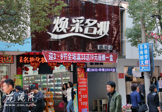 下午,记者在龙港建新路、龙跃路、百有街等街道上看到,很多商家都已推出迎接“三八”妇女节而进行的各项打折促销活动,大部分都是以化妆品、护肤品、服装、家居用品等女性青睐的商品为主。