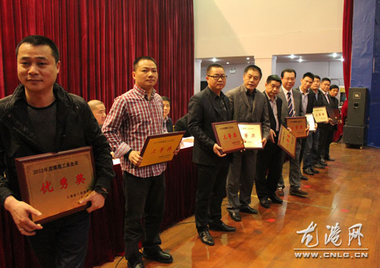 会上,龙港镇委副书记周碧素宣读了《关于表彰2012年度创品牌等奖项企业的通报》、《关于表彰2012年度节能减排先进企业的通报》等的相关表彰文件,并对2012年投资与经济工作上作出突出贡献的先进企业和先进个人进行表彰,予以授牌。