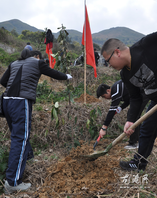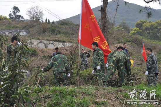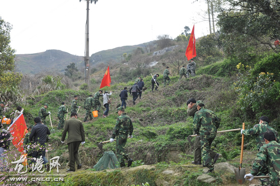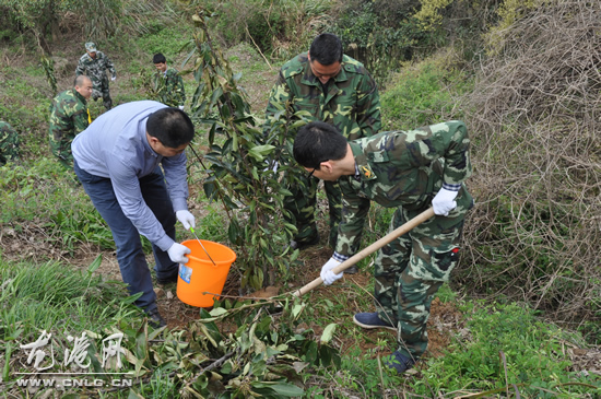 初春的舥艚北岭春寒料峭,仍阻挡不了军民志愿者的植树热情。大家三五成群,刨坑、扶树、培土、浇水,把260多株长青树栽种在山坡上,劳动场面热火朝天。