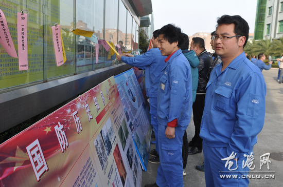 今天一大早,记者在新雅集团等地方看到,国防宣传档板一展开,就吸引了众多员工的关注。每天早上7点半,新雅集团都会开展“三分钟晨读”,今天的内容就是和《国防法》有关的内容。为了使活动更深入人心,主办方还甄选了100多条宣传谜语,使企业职工在猜谜语、拿奖品的同时,也能了解到国防知识,此次活动将继续两天时间。