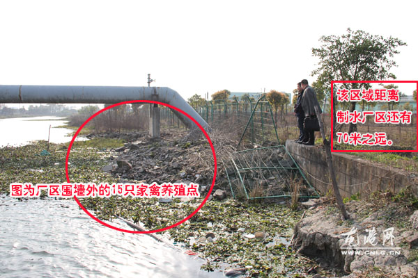 龙港自来水厂李其赐告诉本网编辑说,目前龙港水厂有2条供水管道,分别从吴家园水库和珊溪水库全封闭管道直接引入该厂制水厂区平流池中,吴家园水库管道作为主管道供全镇日常使用,珊溪水库管道作为龙港备用水源。由于该厂制水厂区附近河道已经是断头河,原先指点备用水源取水口已经停止使用2年了,该河道已经不作为备用水源使用。该养殖点距离平流池大约70米左右,家禽产生粪便和细菌,不能会影响水质,更谈不上危害居民健康,龙港水厂水质连续7年全市第一,请市民朋友放心饮用。