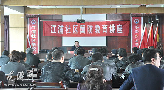 龙港网3月15日讯:今天上午,龙港镇人武部与江浦社区联合举办了国防教育讲座,镇人武部副部长杨介友给社区干部作了国防教育专题讲座。社区全体干部以及社区内各村书记主任等参加讲座。