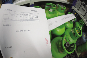 昨天下午,本报记者拿到了市质监局下属的温州市计量技术研究院出具的《定量包装商品净含量计量检验报告》,总体结论是“该检验批的净含量不合格”,其中“大于2倍允许短缺量的件数”达到9瓶,大于1倍、小于或者等于2倍短缺量的件数”为1瓶。市计量院工作人员告诉本报记者,这10瓶罐装液化气钢瓶的型号均为YSP-15,根据国家的计量标准,这种15公斤装的液化气钢瓶充气净重以14.5公斤为准线,并允许有上下0.5公斤的误差。从工商部门抽检的这10瓶罐装液化气的检测结果来看,平均实际含量为12.56公斤,最重的一瓶液化气净重为13.65公斤,以国家标准14.5公斤为准线,差了0.85公斤,超出了0.5公斤的误差范围,判定为不合格;最轻的一瓶液化气净重为11.98公斤,则跟国家标准重量相差达到了2.52公斤之多。