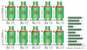 本报记者算了一笔账,以长江能源近日销售给消费者110元一瓶瓶装液化气的价格折算,2.52公斤液化气的价格为19.11元,也就是说这罐液化气如果卖给消费者,消费者拿110元买到的液化气实际价值只有90来元。再回头逐一折算被抽检的10瓶灌装液化气的差价,液化气短缺价值在15元以上的达到了6瓶,其余4瓶价差分别为6.5元、9.5元、11.4元、14.8元。