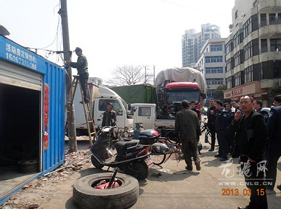 龙港网3月16日快讯:3月15日中午,龙港镇龙跃社区与龙港城管大队利用中午休息时间联合组织执法行动,出动人员35人次,在宫后路、人民路、河底高路等地点拆除乱搭建违章点2处,拆除违章广告牌8处,进一步美化了市容市貌。
