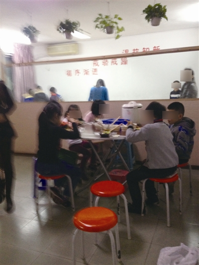 当记者走进不远处的另一家托管机构,五六名学生正围着桌子吃饭,饭菜则是从快餐店买的。