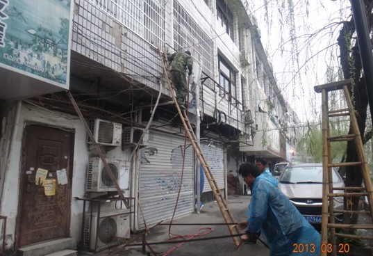 龙跃社区冒雨拆除违章广告牌18处
