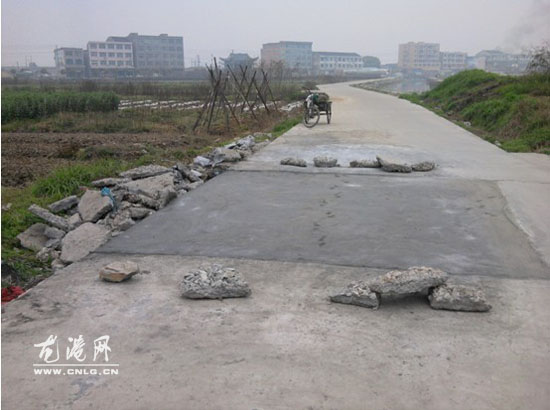 据了解,连接海城社区海下村和朝北处村的通村公路长约1公里,由于路的中间有一个约3平方米的大坑未与主人谈妥,被当地村民俗称为“断头路”。这个大坑属于朝北处村一户村民的粪坑,由于赔偿问题尚未谈妥,一直影响通路。虽然仅有三平方米,却给过往车辆和行人带来诸多不便。