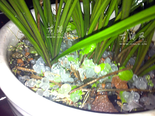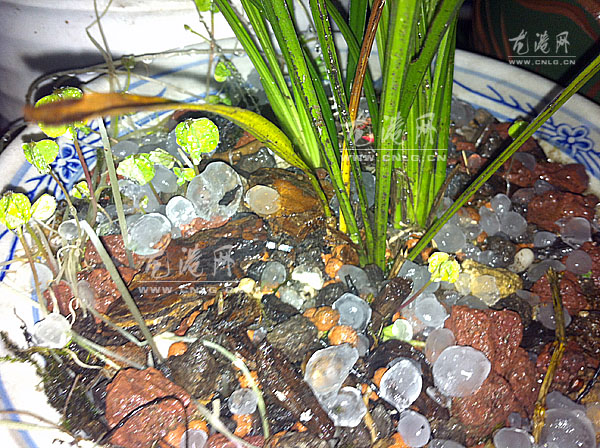 图为本网值班编辑拍摄的冰雹