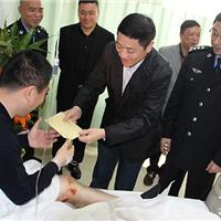 龙港网3月25日讯:3月23日,龙港公安分局以6小时快速侦破了一起绑架案,成功解救被绑人质,先后抓获4名犯罪嫌疑人,并追回被劫保时捷越野车,引起了社会的广泛关注。今天上午,苍南县委书记黄寿龙,县委常委、龙港镇委书记丁振俊,县委常委、县公安局长蒋荣国,龙港镇领导吕存阳一行来到龙港医院、龙港公安分局慰问在围捕中受伤的龙港公安分局局长杨成革,以及全体参战民警。