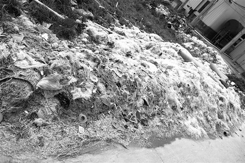 昨天,记者在现场看到,帖子所说的塑编厂主要位于平阳中学生活区旁,呈弧形包围学校生活区的左侧和后侧,学校正门前也有几家塑编企业,其中几家企业的厂房与该校学生餐厅仅一墙之隔。不少废弃的白色塑料丝堆积在路边,厂区围墙下是一堆堆焚烧过的垃圾,墙壁也被熏黑。记者站在该中学一幢寝室楼旁,可以听到工厂机器运转发出的声响,而塑编企业发出的臭味也不时飘进学生餐厅。