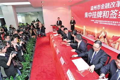 昨天的授牌签约仪式上,出现不少金改新身影:温州首家农村商业银行——龙湾农村商业银行,温州首家小微企业融资再担保中心,温州首批中小企业票据服务公司——温州国信中小企业票据服务公司、温州和君中小企业票据服务公司,温州首批商业保理公司——温州联豪保理公司、温州中融保理公司等14个创新项目齐齐亮相。