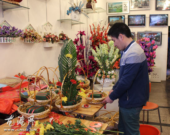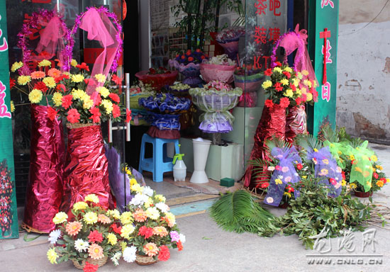 清明节将至,不少市已经开始了祭祖扫墓活动。祭祖扫墓,除了“纸钱”、“金元宝”等传统祭祀用品,一些鲜花和绢花也成了市民扫墓的必备品。鲜花祭祀也悄然成为一种主流,渐渐被群众所接受。记者看到,镇前路上的各花店里摆满各种花篮,工作人员正忙碌的扎插着花篮花束,鲜花主要是黄菊、白菊为主。