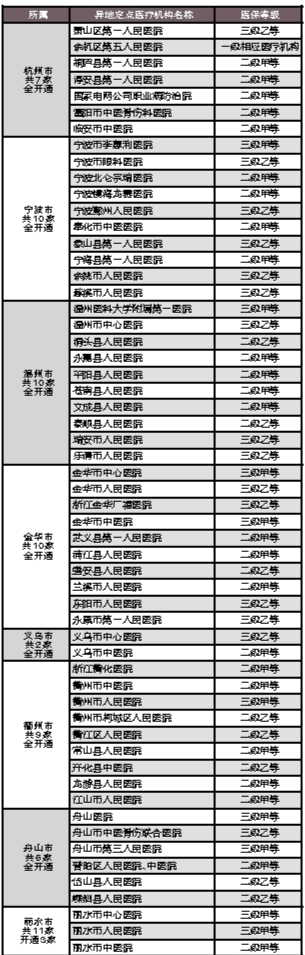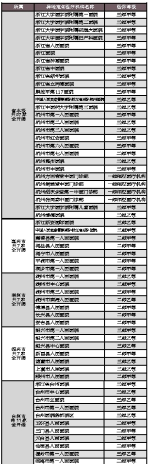 温州社会保障·市民卡的社保功能于去年4月1日开通全省异地就医结算服务功能,为市民提供跨市刷卡结算服务。目前全省异地就医结算“一卡通”定点医院已增至116家(详见右表)。这意味着,温州市民持市民卡可在杭州、宁波、嘉兴、湖州、绍兴、金华、义乌、衢州、舟山、台州、丽水等城市的省异地联网结算定点单位刷卡就医。同时,这些城市的参保人员也可持卡在我市的省异地联网结算定点单位刷卡结算。