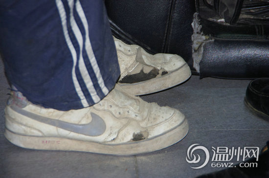 记者估摸着,该男子年龄大概在40至50岁之间。上身穿绿黑相见的羊毛衫,下穿深蓝灰运动裤,脚穿一双米黄色的球鞋,很破,鞋面上翻,有一只鞋的鞋带没系,一位交警正蹲着帮他穿鞋带。