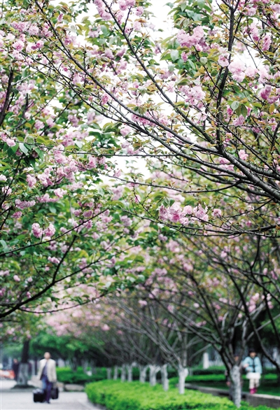 近几年,市区新增不少树种,这是市区水门头一带的樱花。摄影 翁卿仑