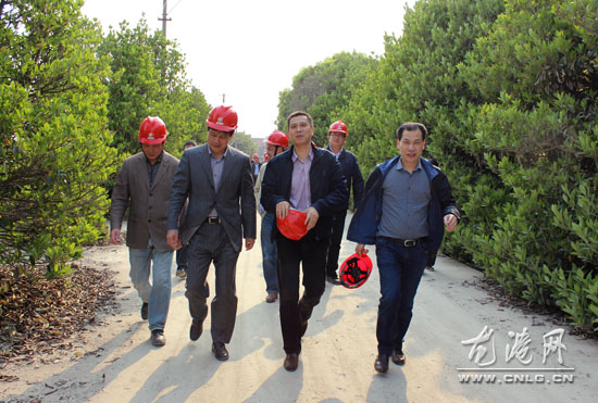 龙港网4月9日讯:昨天下午,温州市副市长任玉明一行到龙港镇朱家站水闸调研,并主持召开现场办公会议。苍南、平阳两县相关领导、水利部门等负责人参加了调研会,龙港镇镇长王忠秀、副镇长章定宇等陪同调研。