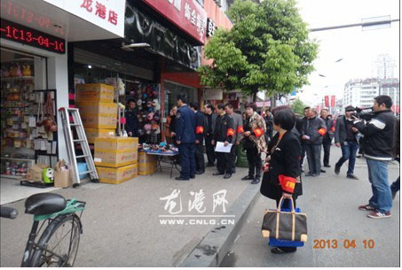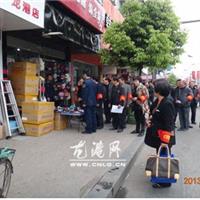 龙港网4月10讯:4月10日,龙港镇龙跃社区党委副书记、环境整治督导队队长叶德生同志带领督导员和城管二中队执法人员,在龙跃路、站前路、建新路、百有市场,对街道占道经营户进行劝导,对乱扔乱丢垃圾行为进行制止;对个别占道经营户、不文明行为者不听劝导,采取了经济处罚,并进行曝光。