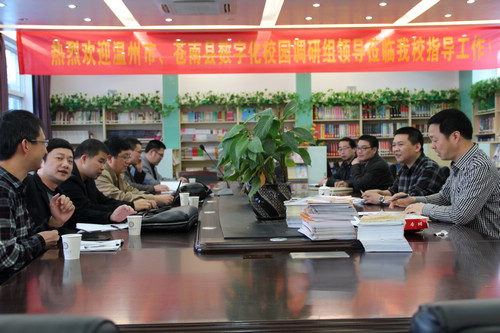 龙港网4月12日讯:龙港四小又添新名片了:被评为省首批数字化校园示范建设校。近日,温州市电教馆馆长、市教育信息中心主任黄岳明和技术培训科科长林立武一行六人,到龙港第四小学调研教育信息化建设及应用情况。