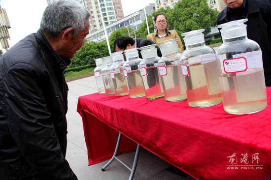 市民仔细比对水样