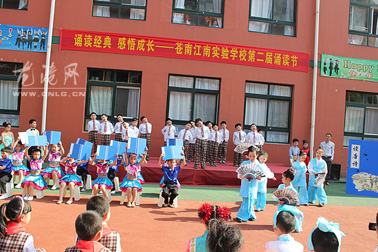 龙港网4月15日讯:最是书香能致远,腹有诗书气自华。4月14日下午,苍南县江南实验学校第二届经典诵读节开幕,全校师生和家长齐聚一堂,诵读经典,与圣贤对话;书韵飘香,让心灵飞翔。