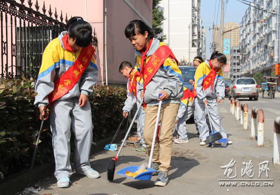 龙港网4月16日讯:整洁龙港,美化家园,就在你我的举手投足之间。昨天下午,龙港镇第七小学组织学生开展“小手拉大手,文明向前走”主题宣传活动,龙港七小龙湖居委会、七小家委会等成员一同参加。
