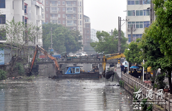 督查中,记者发现通过这段时间综合整治,河道河面明显干净很多。在河道边两台挖掘机正在清除河道淤泥,河道清洁工开着船来来往往,桥下不易发现的角落也有清洁工在忙着清除河道垃圾物,整个场面一片忙碌。