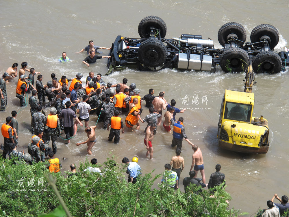 龙港网记录:救灾军车坠河全过程 2名战士遇难