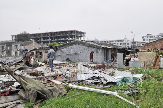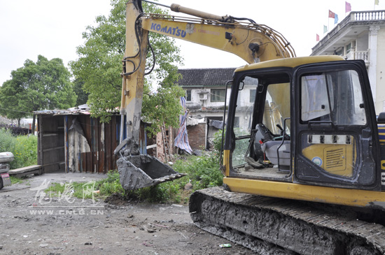 龙港网4月22日讯:昨日,龙江社区组织工作人员拆除三大屋村办公楼后面河道沿线违章建筑。这些违章建筑物,都是些水泥和砖块建构的简易屋棚,这些违章建筑房屋紧密相连,杂乱无章,生活垃圾遍地,给河道沿线居住环境造成极大的影响,附近居民对此反映极为强烈。这次社区自行组织工作人员,出动大型的挖掘机对这些违章建筑进行强制拆除。据了解,此次社区拆违面积已达28000平方米。