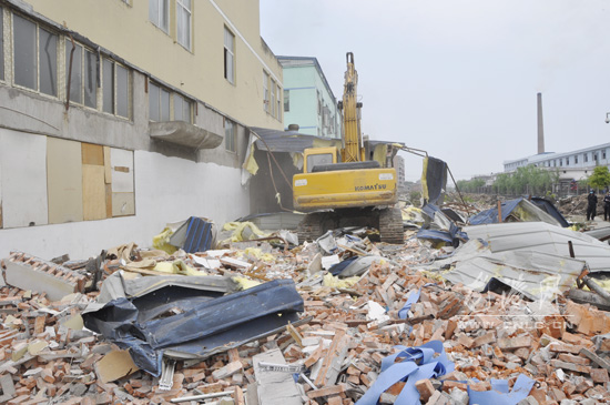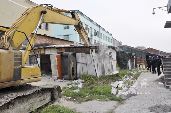 龙港网4月23日讯:为了深入推进拆违建绿工作,更好地改善龙港镇河道沿线的环境,实现河道沿线洁化、绿化、美化的目标。近日,龙港镇两违办组织工作人员对城东工业园区内违章建筑进行拆除,据了解此次拆违行动前,有关部门此前已经向业主下发了限期拆违整改告知书,但大部分居民并未自行拆除。当天,联合执法队将河道沿线的违章棚屋进行了强制清理拆除,副镇长缪维宝参加了此次拆违行动。