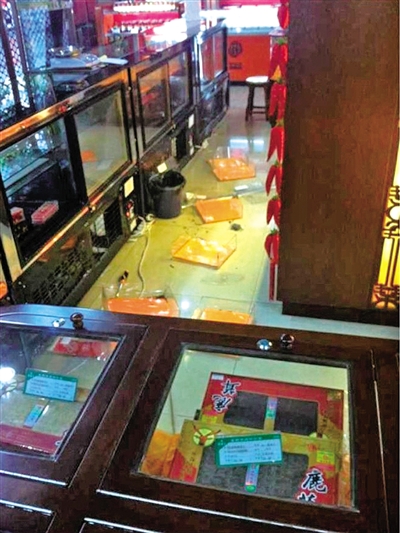 被盗的虫草保鲜柜就位于正对大门的位置,柜台里边,8个装虫草的锦盒全是空的,几名营业员正在交头接耳。