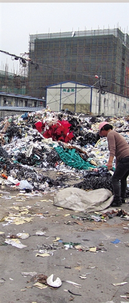鞋都三期附近的垃圾山越堆越多。 夏婕妤 摄