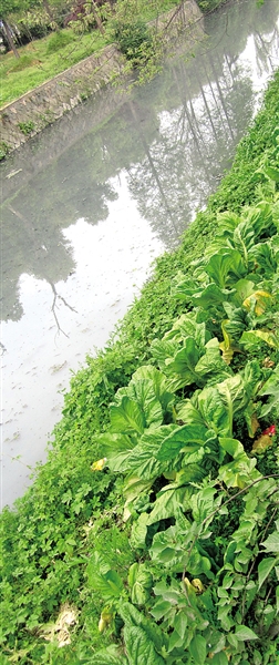 330国道旁绿地里种了很多蔬菜。 夏婕妤 摄