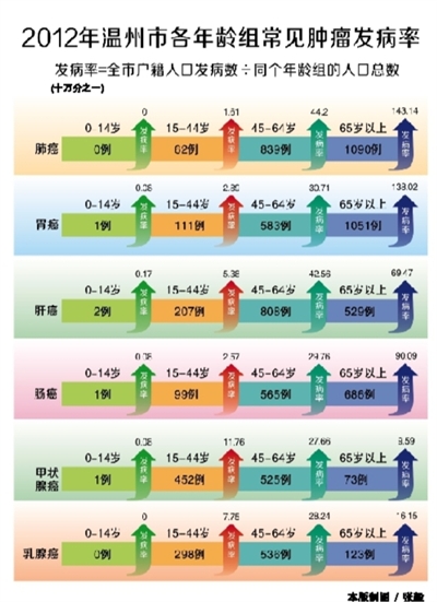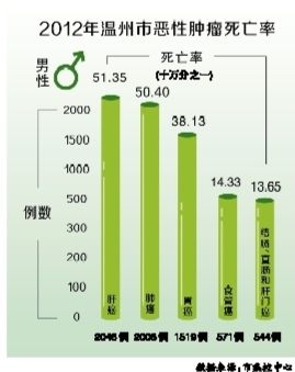 龙港网讯 昨天,市疾病预防控制中心发布了2012年温州市癌谱,去年全市监测数据显示,恶性肿瘤新发病共报告13270例,死亡报告12396例,癌症已成为居民的首位死因。