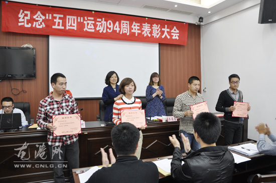 龙港网4月26日讯:昨天下午,龙港镇举行纪念“五四”运动94周年表彰大会。镇委副书记周碧素、县团委副书记廖蓓蕾参加会议。镇团委书记刘彬彬作去年共青团工作回顾和今年工作报告。镇委副书记周碧素出席会议并作重要讲话。来自全镇各社区、机关、中学团员青年代表共70多人参加了会议。